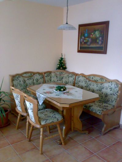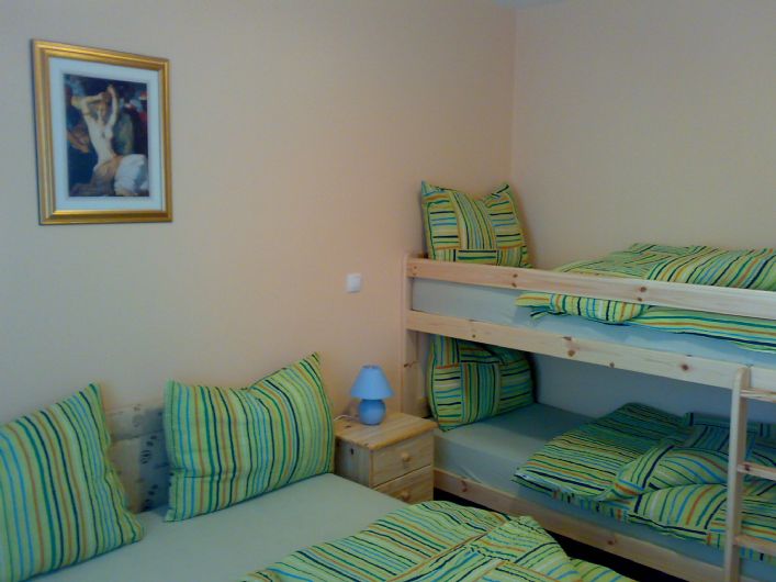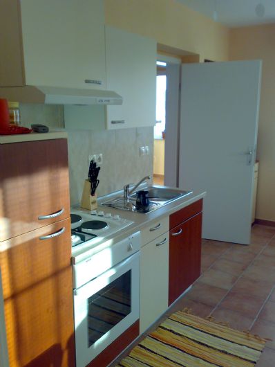 34m2, pritličje (2–4 osebe) Spalnica z zakonsko posteljo in pograd ležiščem za 2 osebi, dnevni prostor, kuhinja, wc, tuš, sušilec za lase, TV, WI-FI, terasa. Cene glede na število oseb.